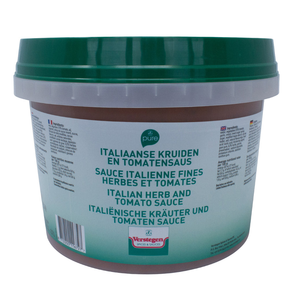 Our Italian Herb & Tomato Sauce is a classic; an absolute staple sauce to be kept in your kitchen to give you quality and flavour in an instant. Ideal for butchers.